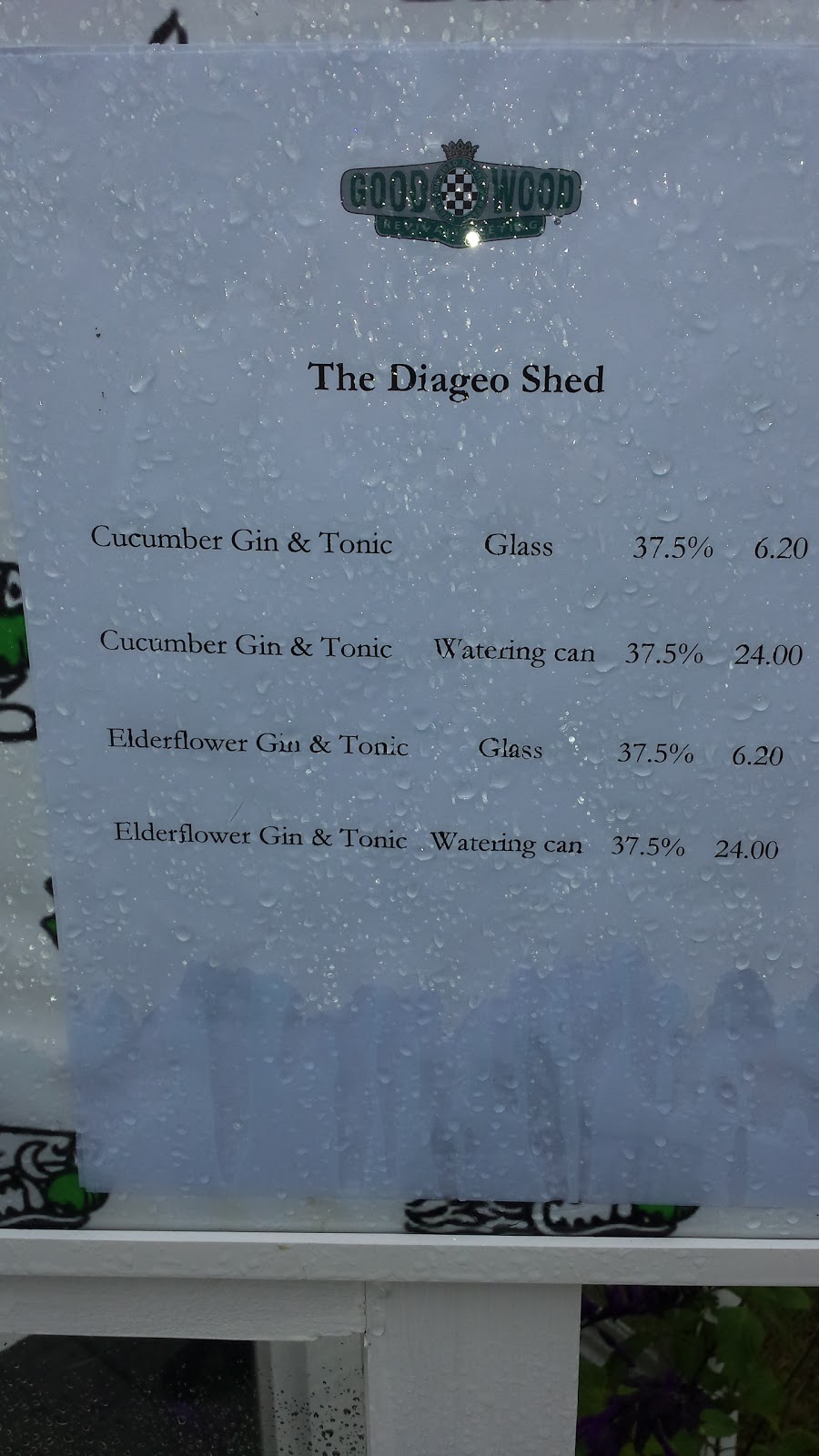 The Diageo Shed at Goodwood Revival was selling branded mini-watering cans full of cucumber or elderflower gin and tonic at £24. Fun.